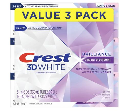 Description Our Most Advanced* 3D White toothpaste yet. Crest 3D White Brilliance toothpaste whitens teeth by removing 100% more surface stains i...
