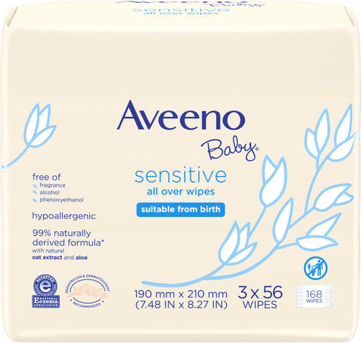 Aveeno Baby Sensitive All Over Wipes, Hypoallergenic & Fragrance-Free, 168 ct,